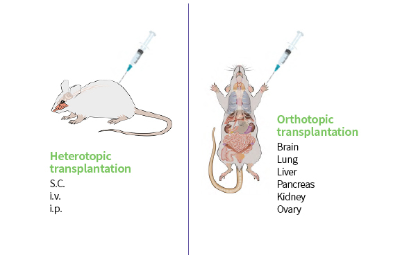 Orthotopic models brain, lung, breast, tongue etc.